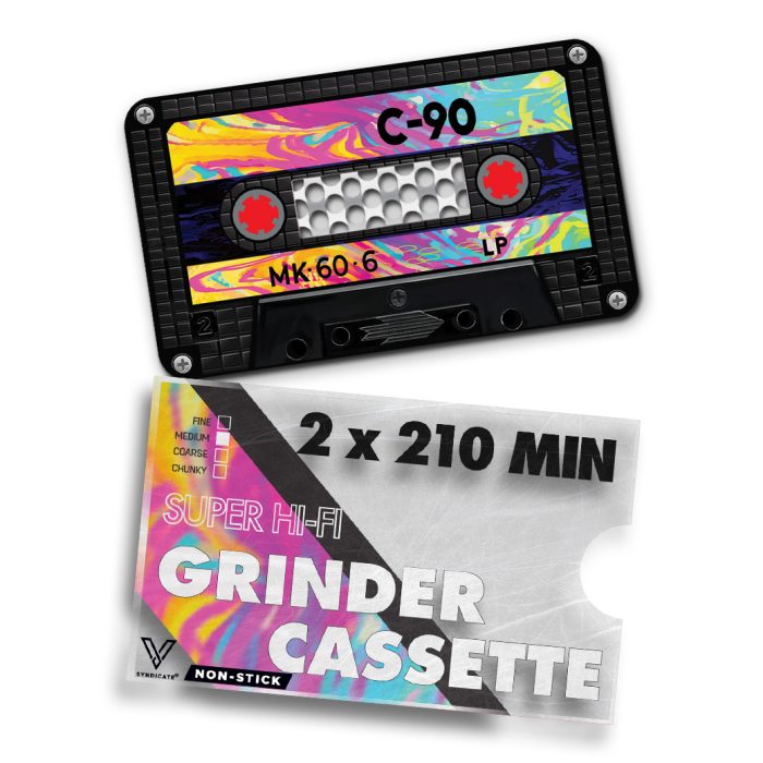 De Cassette Card Grinder van V-Syndicate combineert functionaliteit met een nostalgisch design, perfect voor liefhebbers die hun kruiden discreet en stijlvol willen malen. Geïnspireerd door de klassieke cassettebandjes, is deze grinderkaart niet alleen een praktisch hulpmiddel, maar ook een uniek accessoire dat gemakkelijk in je portemonnee past.