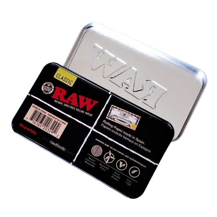 Conclusie: De RAW Metal Tin Case XL in Black is een essentiële accessoire voor elke serieuze roker die waarde hecht aan zowel stijl als functionaliteit. Met zijn duurzame materialen, handige indeling en verfijnde ontwerp, biedt deze case de perfecte oplossing voor het opbergen van uw rookaccessoires en maakt hij een statement van elegantie en praktische eenvoud.